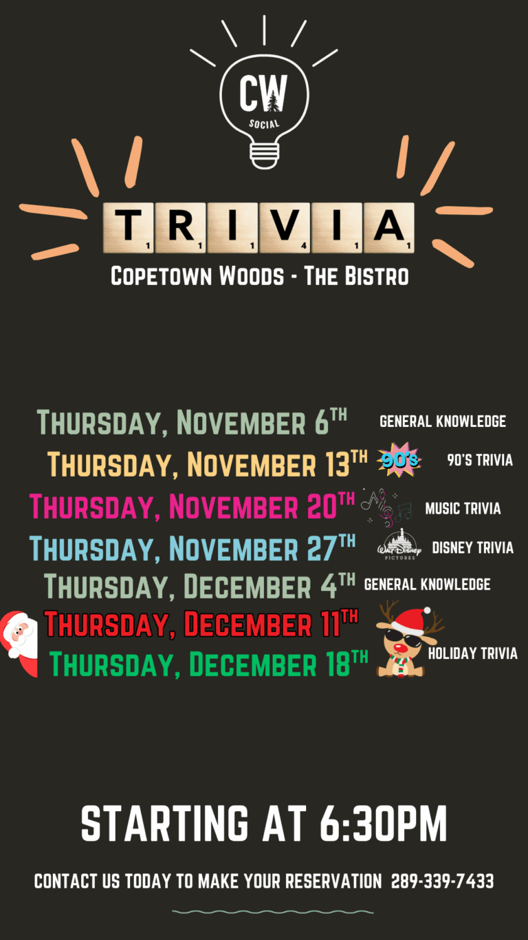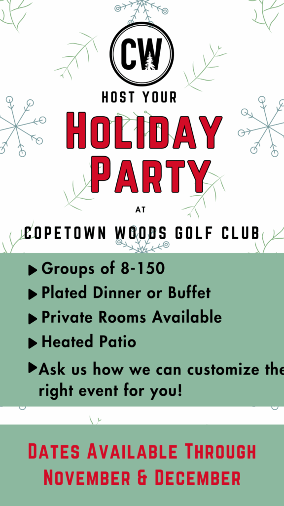 The Golf season may be winding down, but we have plenty of upcoming events that will be sure to get you into the spirit of the Holiday Season! For more information or to book reservations, please call us at (905) 627 – 4653 or click on any of the images below to send us an email.